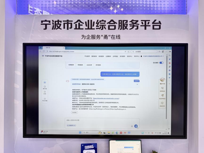 2025年9月5日,第十五届智慧城市与智能经济博览会在宁波国际会展中心隆重开幕。宁波市企业综合服务平台于4号馆4b01展区设立专题展位,集中展示我市在企业服务数字化、智能化方面的创新成果,受到企业与参展观众的广泛关注。