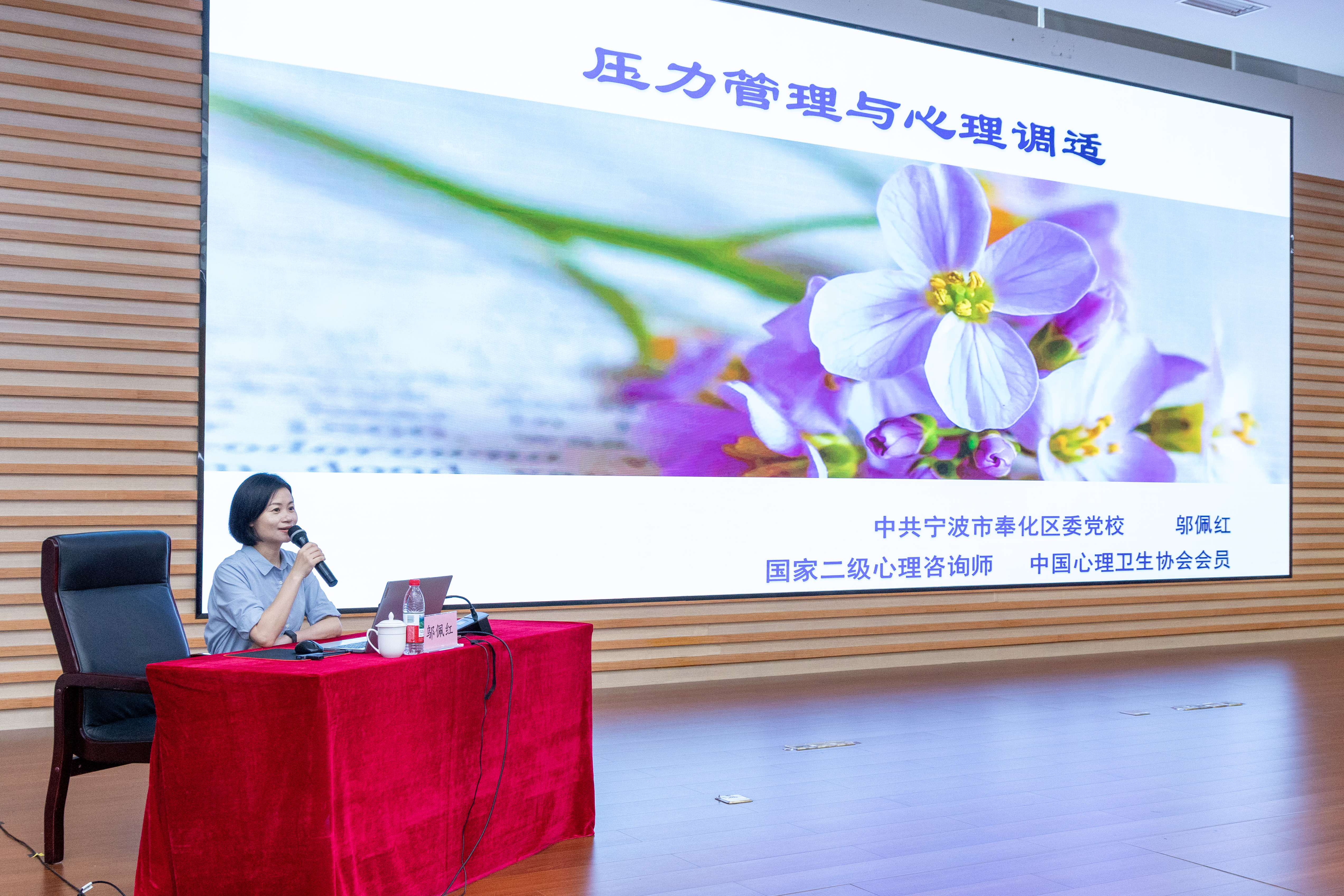 针对窗口一线岗位任务重、要求高、压力大的现状,邀请了奉化区委党校高级政工师、国家二级心理咨询师邬佩红副教授作压力管理与心理调适专题授课。邬教授通过环环相扣地深入分析,分享了压力管理中的自我调适之道,通过现场演示冥想放空之法让全体学员真切体会到情绪放松与压力舒缓,引导大家用调整生理、察觉情绪、接纳情绪、表达情绪、调整认知这五步情绪管理法不断增强自身心理韧性,助力大家实现高效工作与健康生活的平衡。